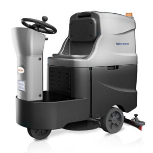 Kruger KF 75100B – простая и неприхотливая в эксплуатации полу промышленная самоходная двухщеточная поломойка с сиденьем для оператора для мойки твердых полов, КНР. Удобный доступ к аккумуляторам и местам обслуживания, светодиодный фонарь, индикатор состояния заряда аккумулятора, проблесковый маячок. Автоматическая система подъема и спуска щеточного узла и водосборной щетки.