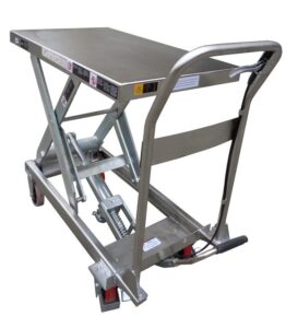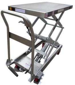 Гидравлический подъемный стол из нержавеющей стали специально спроектирован для эксплуатации в жесткой агрессивной среде (повышенная влажность, высокий уровень щелочного и кислотного воздействия) или при повышенных требованиях к стандартам гигиены (пищевая или фармацевтическая промышленность).